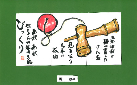 五年位前に孫に買ったけん玉見るなり見事に成功あれあれ敬ちゃんの器用さにびっくり